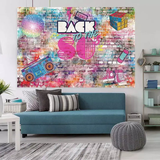 Hip Hop Graffiti Wall Photography Backdrops Back to 80's 90's Colorful Brick Wall,