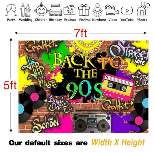 90s Themed Party Backdrop – Graffiti Art, Boombox, and Street Life Design