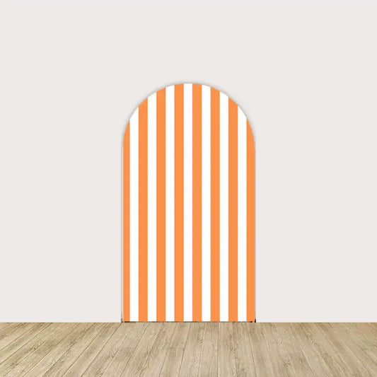 A Little Cutie Is On the Way Baby Shower Arch Backdrop Set with Stripes & Bright Citrus Color