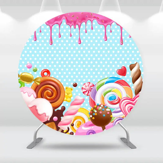 Donut Candyland Baby Shower Round Backdrop Circle Background Cover Newborn 1st Birthday Party Photo Studio Plinth Covers