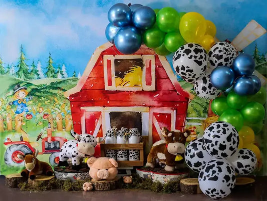 Farm Animal Birthday Backdrop – Barnyard Red Barn Banner for Kids Party