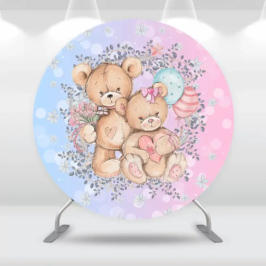 Gender Reveal Party Boy or Girl Round Backdrop Cover Custom Balloons Bear Baby Shower Circle Background Cake table Pillar Covers