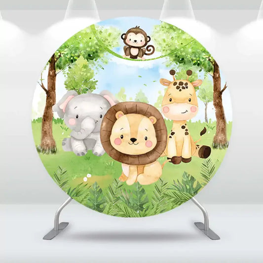 Round Backdrop Cover Forest Jungle Safari Baby Wild One Birthday Photo Background Baby Shower Arched Wall Backdrops Elastic