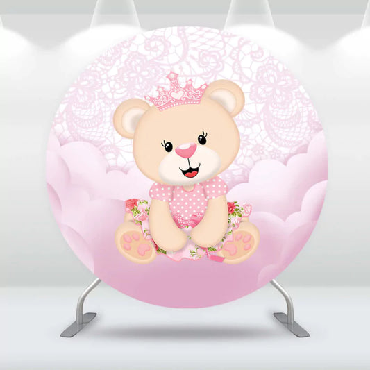 Round Backdrop Pink Baby Bear Circle Background Princess Girl Baby Shower Birthday Party Table Covers Decoration
