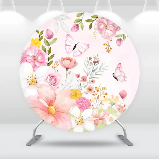 Romantic Floral and Butterfly Round Backdrop & Cylinder Covers for Events