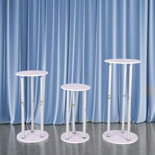 Round White Metal Wedding Arch Stand Iron Circle Balloon Flower Ring with 3 Cylinder Pedestals stand for Wedding, Birthday Party, Garden Decoration