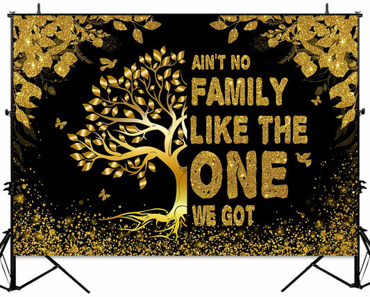 Sensfun Family Reunion Backdrop Black Gold Family Tree Photography Background