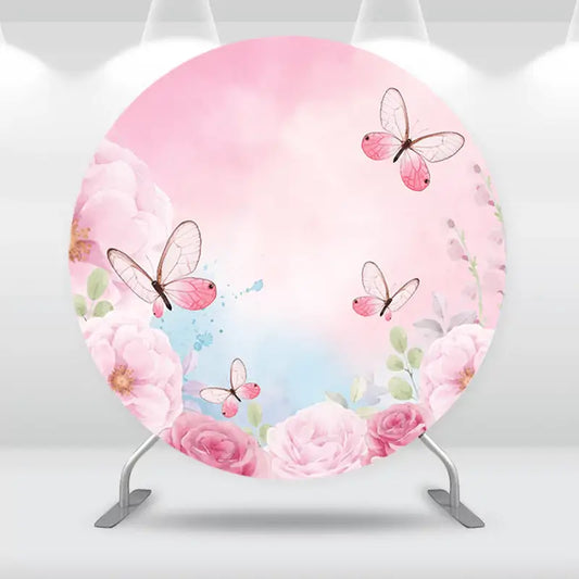 Sensfun Round Circle Birthday Party Backdrop for Photography Flower Butterfly Women Happy Birthday Photo Background Table Cover