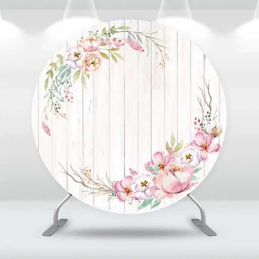 Sensfun Newborn Baby Shower Circle Backdrops Round Background Flowers Wood theme Kids Birthday Banner Party Decor Cylinder Covers