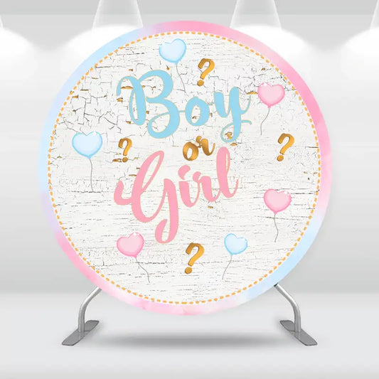 Sensfun Gender Reveal Party Baby Shower Circle Cylinder Cover Background Pink Blue Balloons Boy or Girl Round Backdrop Cover