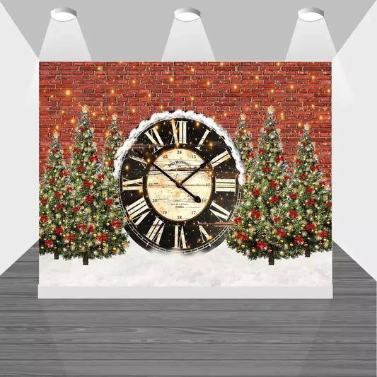 Christmas Countdown Clock Backdrop – Holiday Party Banner with Trees and Brick Wall
