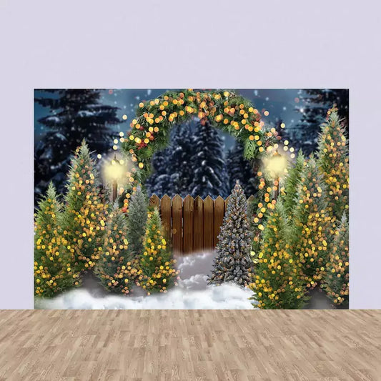 Christmas Forest Backdrop – Glowing Holiday Trees and Snowy Scene Banner