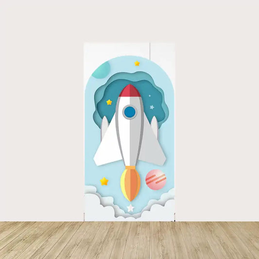 Blast Off Space Arch Backdrop Set with Planets, Astronaut Sitting on Saturn, and Celestial for Kids’ Party
