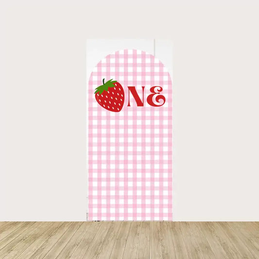 Berry First Birthday Arch Backdrop Set - Pink Gingham and Strawberry Theme for Girl