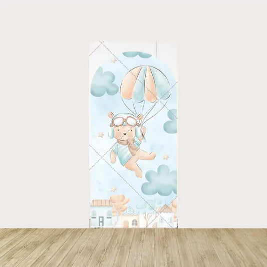 Bear Baby Shower Decorations Blue Hot Air Balloons Arch Backdrop Cover Chiara Wall Photobooth Background Cake Table Banner