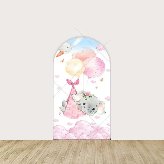 What Will Baby Be Gender Reveal Arch Backdrop Set with Elephants, Balloons and Clouds
