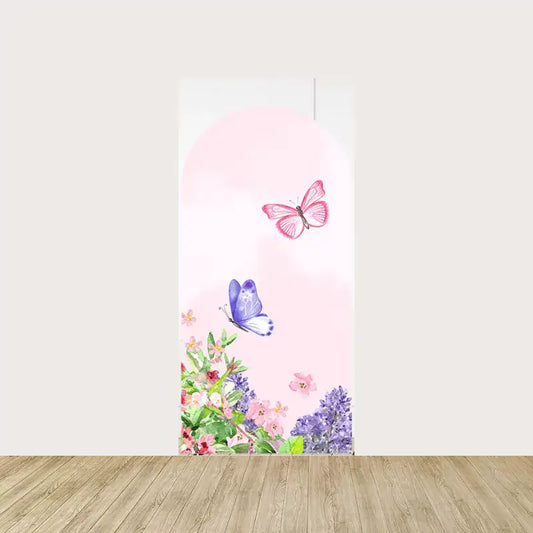 Pink Butterfly Spring Garden Arch Backdrop Set – with Floral and Watercolor Insect Design