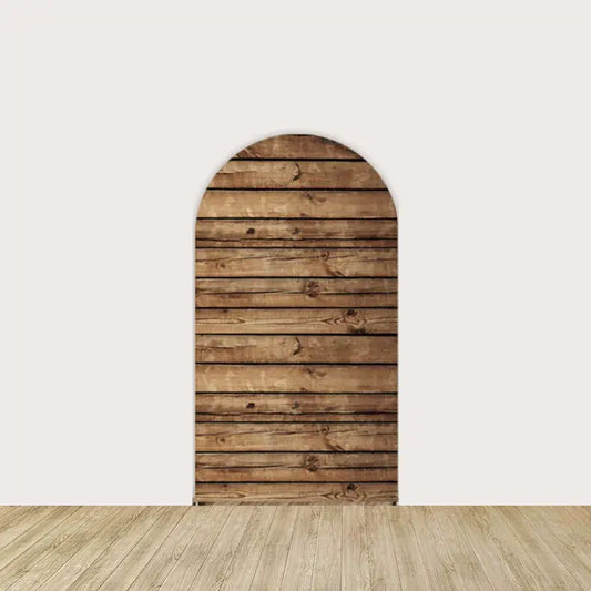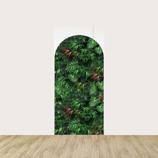 Rustic Floral and Greenery Arch Backdrop Set with Wood Texture, Tropical Leaves, and Roses for Wedding or Garden Party
