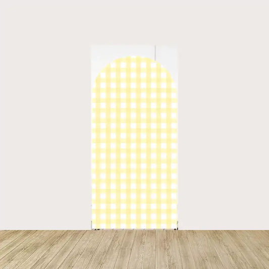 Yellow and Pink Gingham Baby Shower Arch Backdrop Set with Floral Bees and Honeycomb Center