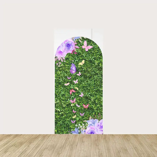 Personalized Floral Greenery Arch Backdrop Set with Butterflies for Spring Garden or Birthday Event