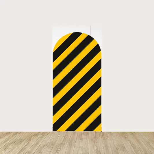Construction Kid's Birthday Arch Backdrop Set with Digger, Builder Boy and Yellow Caution Stripes