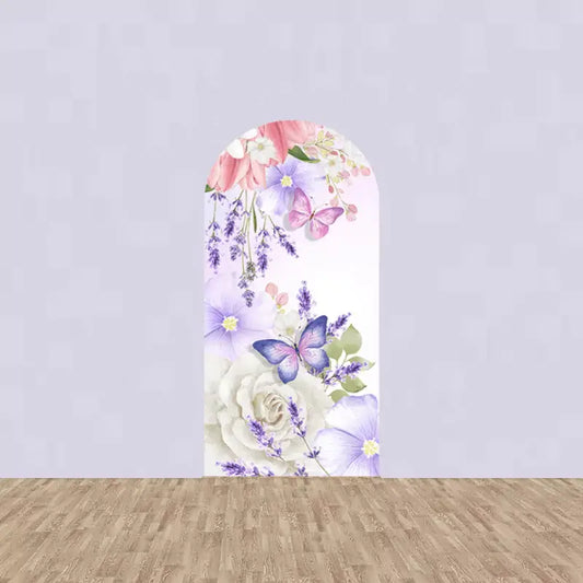 Purple Butterfly and Floral Arch Backdrop Set with Lavender and Pink Flowers for Birthday & Baby Shower