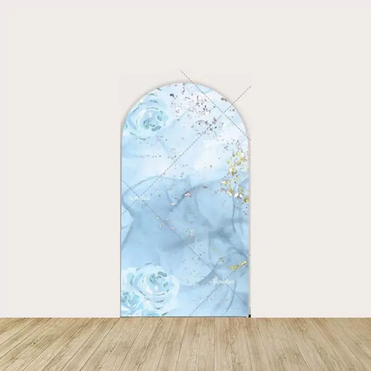 Quinceanera Sweet 15 16th Princess Birthday Party Arch Cover Backdrops Girl Dress Glitter Blue Marble Floral Butterfly Decor Photo Background