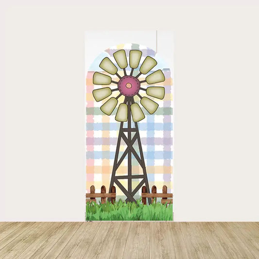 Barnyard Theme Party Arch Backdrop Set – Red Barn, Cow, Horse, and Country Picnic Scene