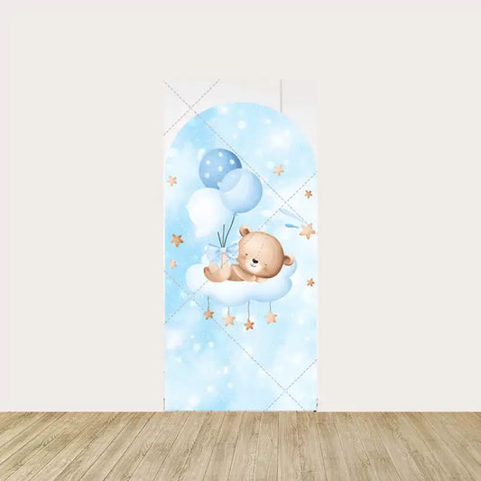 Boy or Girl Gender Reveal Arch Backdrop Set with Teddy Bears, Balloons, and Sparkles