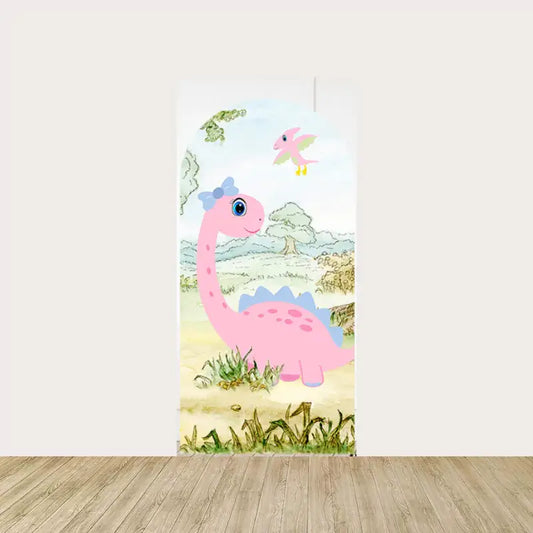 Cartoon Dinosaur Family Arch Backdrop – with Cute Dinosaurs and Baby Dino for Kids’ Party