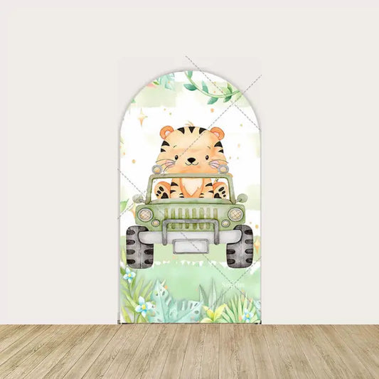 Safari Jungle Animal Party Arch Backdrop Set with Jeep, Safari Sign, and Cute Animals