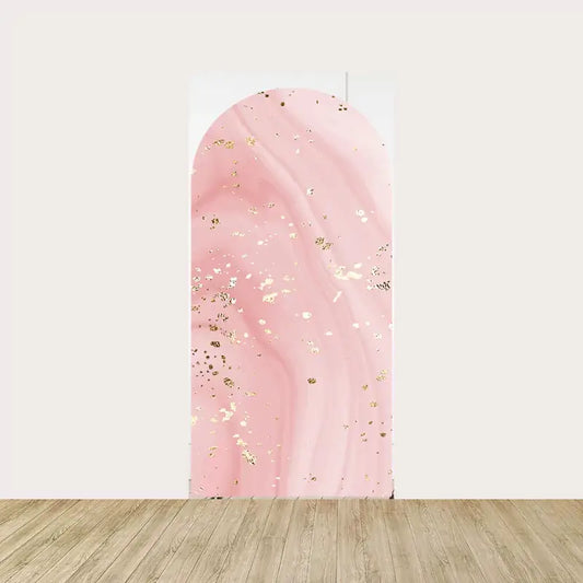 Modern Pink & Gold Party Arch Backdrop with Gold Foil Effect & Butterfly Florals for Elegant Events