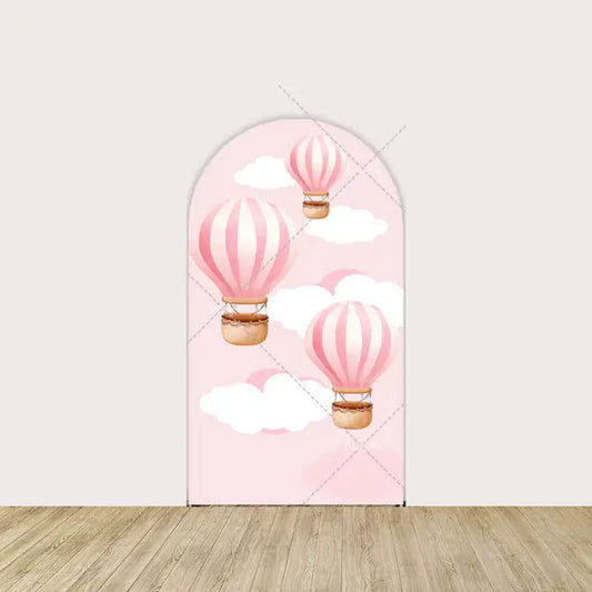Pink Hot Air Balloon Arch Backdrop Set with Clouds & Floral for Baby Shower and Birthday