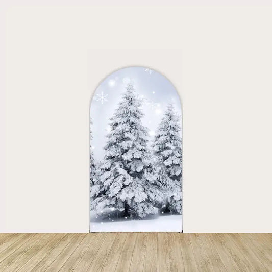 Winter Wonderland Arch Backdrop – Snowy Pine Tree Forest Scene