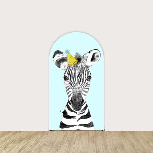 Safari Animal Birthday Arch Backdrop Set with Zebra, Giraffe & Greenery Wall