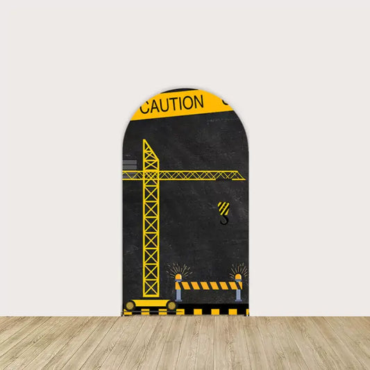 Black and Yellow Construction Birthday Arch Backdrop Set with Diggers, Bulldozers & Caution Tape