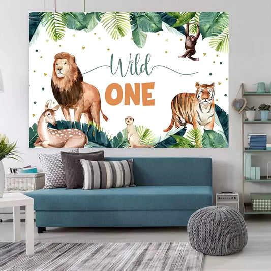 1st Birthday Safari Backdrop – Wild One Jungle Party Banner for Kids