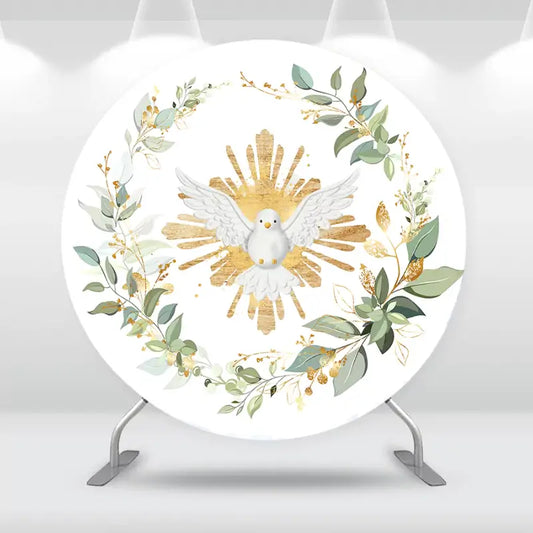 My First Communion Round Backdrop Cover Dove Baby Shower Mi Bautizo Background Green Leaves Arch Wall Backdrop Plinth Covers