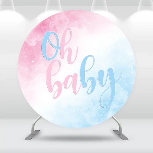 Oh Baby Pink and Blue Round Backdrop Cover with Cylinder Covers for Gender Reveal Party Decor