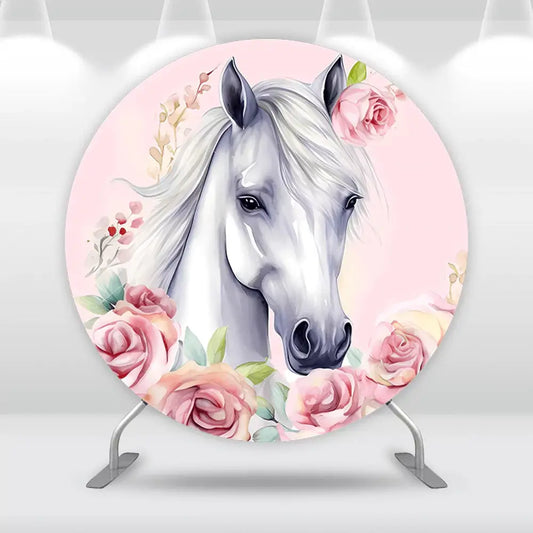 Western Pink Cowgirl theme Round Backdrop for Photography Princess Girl Birthday Circle Background Cake Table Cylinder Covers