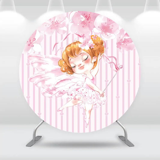 Ballet Dancer Princess Girls Birthday Circle Round Backdrop Cover Pink Cherry Flowers Ballerina Cake Table Cylinder Covers