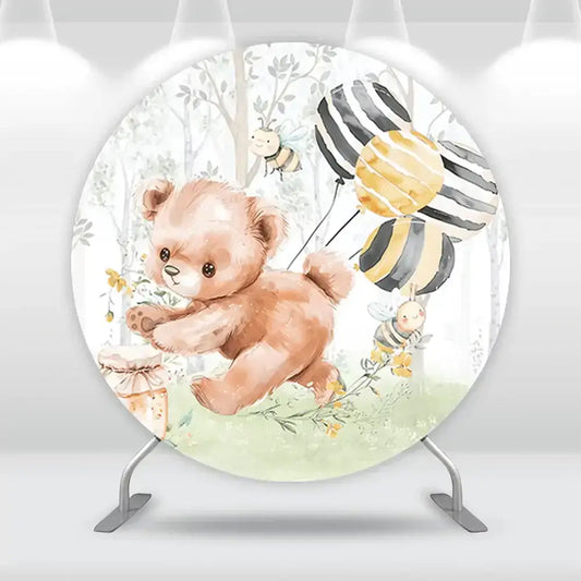 Watercolor Bee Bears Honey Baby Shower Round Arch Backdrop Cover Forest Bear 1st Birthday Circle Background Cake Table Banner