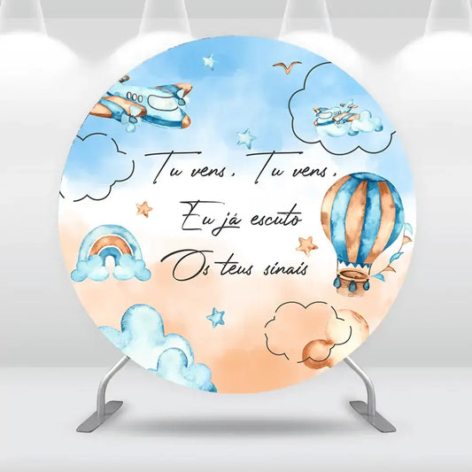Welcoming Baby Circle Round Backdrop Cover Blue Hot Air Balloons Newborn Kids 1st Birthday Photography Background Cylinder Cover