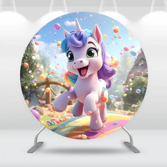 Baby Shower Decoration Whimsical Unicorn Party Round Backdrop with 3 Cylinder Covers
