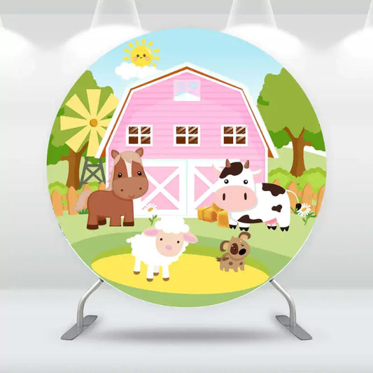 Barnyard Baby Shower Backdrop – Pink Barn & Farm Animals Photo Round Banner