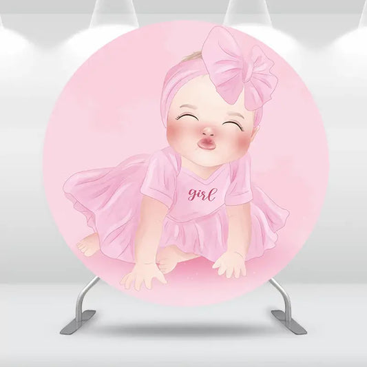 Baby Girl Birthday Round Circle Backdrop Cover Pink Hot air Balloons Newborn Baby Shower Background Photography Cake Table Party Decoration