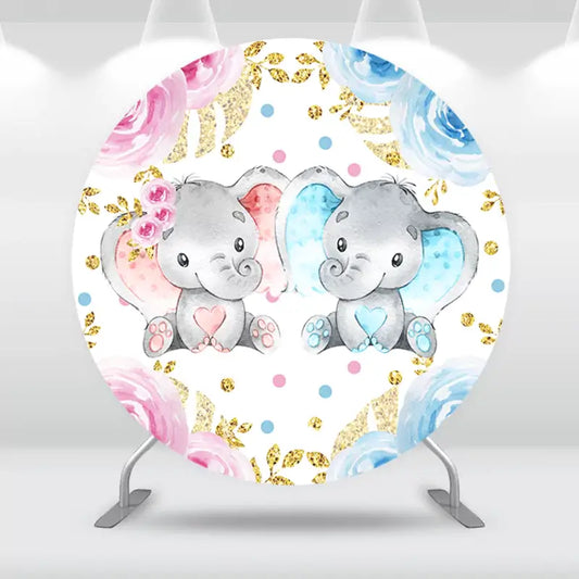 Baby Elephant Baby Shower Round Backdrop Cover Gender Reveal Party Photocall Boy or Girl Background Circle Pedestals Covers