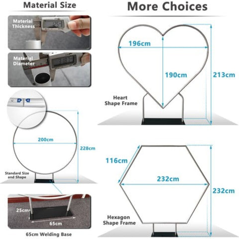 It's Collapsible and easy assembly. Signature Lightweight aluminum snap tubes be Connected together,iron base provides stability. Also this Round frame can be used to create most mesmerizing wedding arch, door arch, balloon or floral arches, backdrops, peppy photo booths, and even quirky geometric presentations.