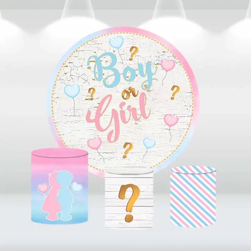 Make your gender reveal party unforgettable with our 'Boy or Girl' decoration set. Featuring a beautifully crafted round backdrop with pastel balloon designs and matching cylinder covers, this set creates a charming and cohesive party setup. Perfect for building anticipation and excitement as you reveal the big surprise to your loved ones.