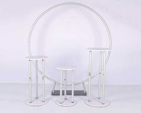 Round White Metal Wedding Arch Stand Iron Circle Balloon Flower Ring with 3 Cylinder Pedestals stand for Wedding, Birthday Party, Garden Decoration